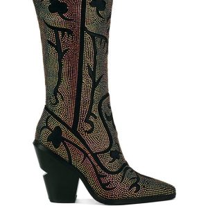Glimmer Rhinestones Embellished Shimmer Calf Boots