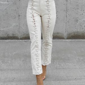 Women’s High Waist Slim Perforated Lace Design Tight Trousers