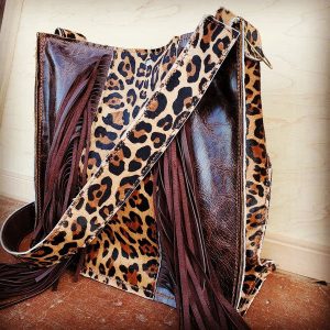 Hair on HIde Box Handbag w/ Leopard Accents