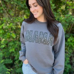 Faux Embroidery Leopard Mama Sweatshirt